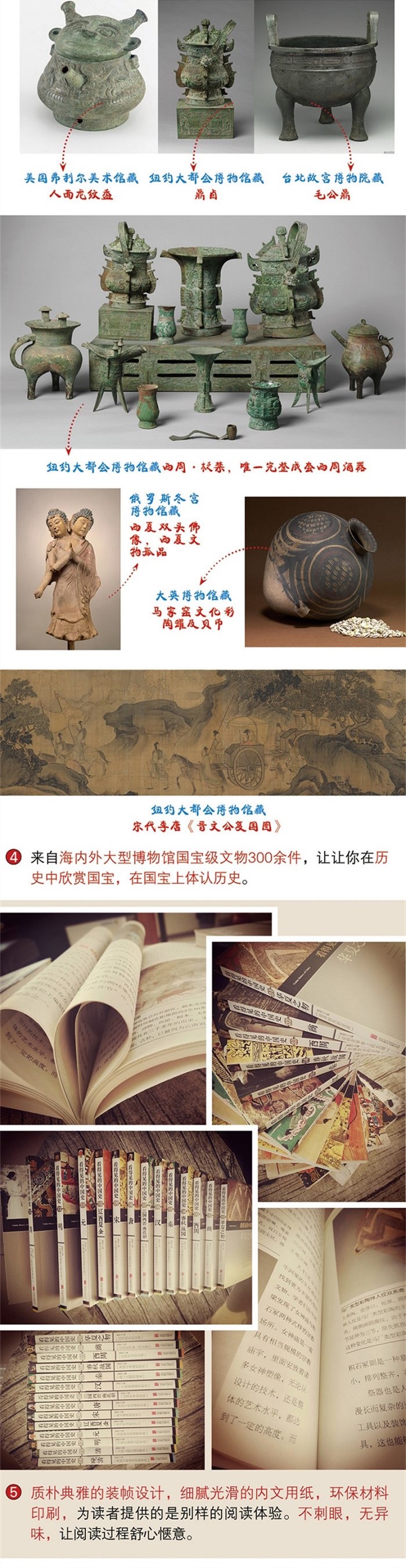 ▲ 独一无二的图片资源。本书中插配的图片,是近年来少有的囊括了海内外各大博物馆中国文物珍品的一部彩图版历史书,高清晰的文物图片以及细节展示,带给读者不一样的历史观感。
