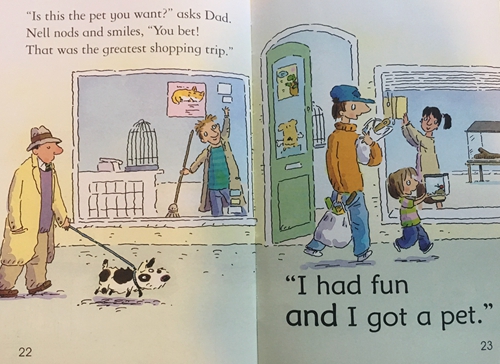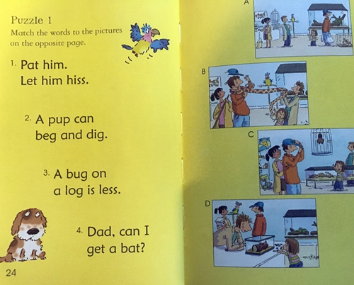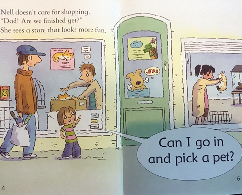 《完美宠物》:Nell不太喜欢逛街,但是她看到一个宠物店想要一个宠物。爸爸觉得狗狗太脏乱,不肯答应Nell的央求,后来蛇,蝙蝠,鹦鹉,最后,只有一点点钱的Nell买了一只小甲虫。本书为初级儿童读物系列中的第一级(共22本),内容词汇均简单,适合幼儿和初学者亲子共读:自然拼读the-very-first-reading-level。整体编排巧妙,专为语言启蒙和亲子阅读而设计,左边页面的文字字体略小由家长朗读并加以解释,而右边的文字字体大而简单朗朗上口,适合让孩子大声拼读出来,这样搭配,孩子的阅读成就感大大提升。书末附有几个基于故事情节的亲子小问答以巩固阅读的乐趣和收获,所有的问答都附有答案哦。