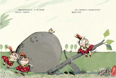 是一个充满奇思妙想的故事。这天,小格劳丝一个人若有所思地站在她的花园里,想要知道那个圆圆的灰色石头下面藏着什么。她跑到石头那边推动它,手却深深地陷在泥土里。她用手摸索着,然后闻了闻,觉得一定要把这个大石头移开。石头底下会是一只绿色的黏糊糊的怪物吗?会是一个令人讨厌的头发灰白的小矮人吗?没想到,当她推开石头以后,却发现结果完全出乎她的意料!