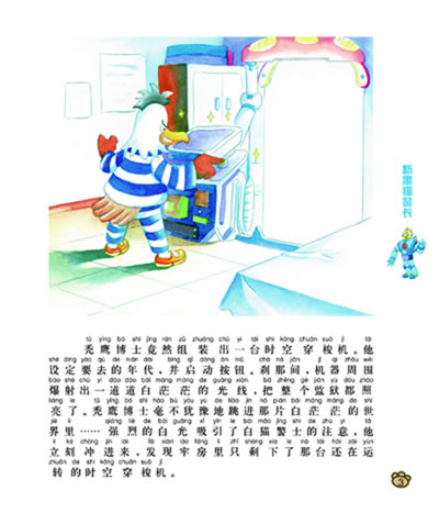 新黑猫警长(注音 全彩 图画书)”系列是以中国经典卡通形象黑猫警长为原型,“黑猫警长之父”诸志祥和著名儿童文学作家杨鹏(代表作“装在口袋里的爸爸”系列)联手精心创作的全新故事。全系列现共六册:《“聪明”的红狐狸》《真假黑猫警长》《恐龙总动员》《奇怪的天气》《机器人小王子》和《黑狼的古怪发明》。故事内容适合学龄儿童,画面精美,文字加注拼音。在《黑狼的古怪发明》中,一只耳和黑狼博士“狼鼠为奸”,共同利用黑狼博士发明的超级电磁波企图操控人们,进而霸占森林市!黑猫警长直捣黑狼博士和一只耳的老巢,却被巨大的激光炮击落,直升机坠入山谷爆炸了……