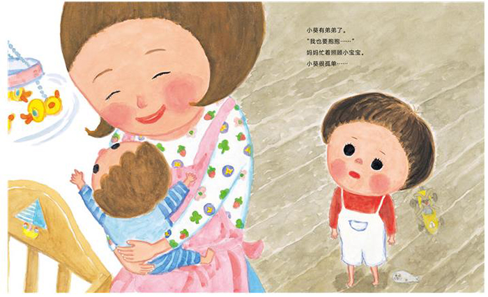 小葵有弟弟了。妈妈忙着照顾小宝宝。