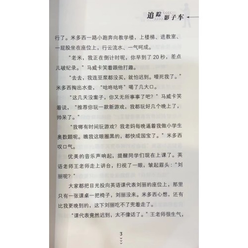 一起交通事故将刘爷爷变成了植物人,没人性的司机驾车逃逸,现场没留下任何有价值的线索,而受害人只说了一个yang字这个神秘的文字代表什么?汽车牌号?肇事司机?还是车标?课外侦探组的孩子们发誓要抓住肇事者。随着调查的深入,自负的飙车小子、神秘的私营汽修厂,诡异的“红色赛道”俱乐部——浮出水面,牵扯出盗车案、雇凶杀人案。十年前的走私大。案等一系列案件,案中有案,环环相扣,孩子们面临前所未有的考验,他们能顺利抓住肇事司机,为无辜的刘爷爷讨个公道吗?现在,就让我们跟随三个小侦探一起开始激动人心。充满惊险智趣的调查吧!