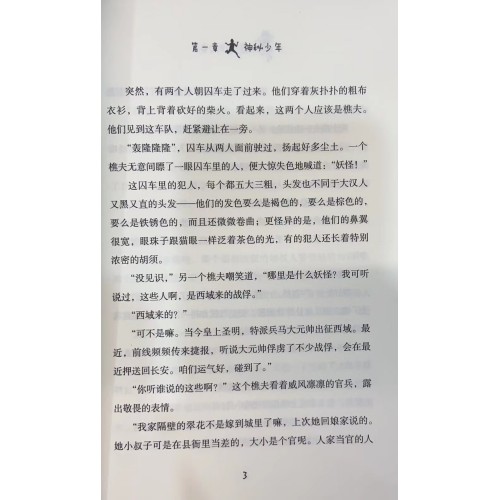 本书是由著名儿童文学作家、探险家彭绪洛,以“张骞第一次出使西域”的历史事件为主题,专为少年儿童创作的一系列探险故事,包含《遇见汉武帝》《匈奴国历险》《胡杨林奇遇》《重回长安城》。 11岁的少年虎克是一位小小探险家,在拨弄爷爷留给他的“神秘钟”时,神奇地穿越到了遥远的西汉。在那里,他遇见了西汉使臣张骞和匈奴向导甘父,并和他们一起出使西域,亲历张骞开拓丝绸之路的艰难历程。作者用令人惊叹的想象和凝练有力的个性化语言营造出一场既精彩又励志的穿越时空之旅,不仅让小读者了解了张骞开辟丝绸之路的艰辛过程,认识了张骞、军臣单于等赫赫有名的历史人物,也让他们了解了塔克拉玛干沙漠、胡杨林等独特的地形地貌;同时,随着故事情节的推进,小读者将与虎克、张骞和甘父一起,走过匈奴、车师、大宛、大月氏等西域古国,初步建立起丝绸之路的地理概念,激发探索丝绸之路的浓厚兴趣。 在出使西域...