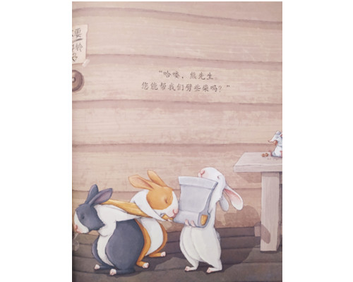 这是一本关于友谊的图画书,一只大熊离群索居,忽然有一天,对面搬来了一窝兔子,他喜爱的平静生活瞬间被打破了!兔子们又是借柴火又是借蜂蜜,又要换书读又要约看流星雨,大熊几次拒绝不成,终于一声熊吼把兔子们吓跑了。很长一段时间,再也没有任何人来找他。直到一个深秋的早上,随着“叩叩叩”的轻轻的敲门声,大熊的生活从此彻底改变了……