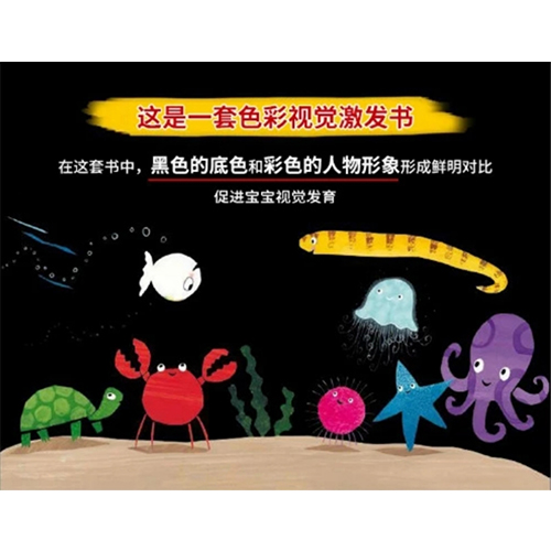 《彩虹色的小白鱼》是一套给婴幼)看的图画书,这套书文字简单、图画简洁,非常适合婴幼儿阅读。0-3岁是孩子视觉观察与认知能力快速发展时期,在这套书中,黑色的底色和彩色的人物形象形成鲜明对比,促进宝宝视觉发育。书中的故事温馨易懂,内容涵盖情绪、情感、方位、数数等方面,朗朗上口的问答形式增加了参与感,有利于提升幼) L的表达能力。快来看看这套静静的彩色小书,让我们和孩子-起,走进小白鱼的世界,体验小白鱼的情绪,看看小白鱼遇到了什么,学会了什么。通过看小白鱼的故事,孩子也会有很大收获。