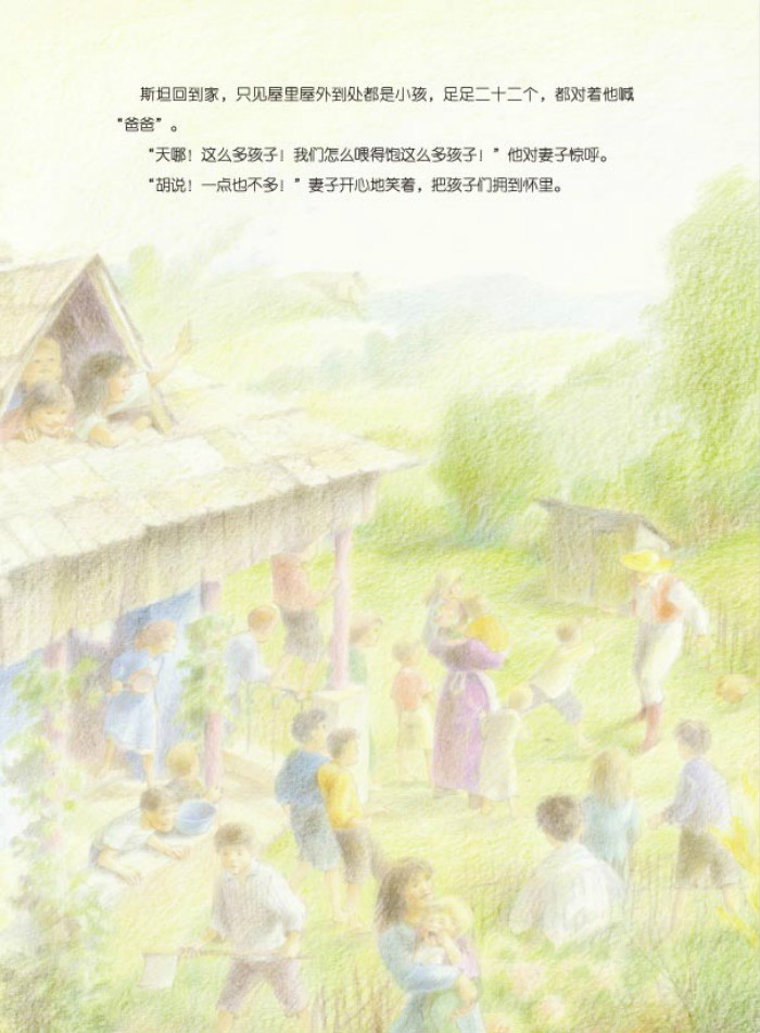 斯坦是一个乐观机智的平凡人,他和妻子知足常乐,只是忧愁自己没有的小孩。有一天他遇到一位智慧老人,老人许诺斯坦可以给他最想要的东西,于是当斯坦回到家的时候,他惊讶地发现家里足足冒出二十二个孩子!为了养活这么多孩子,斯坦只好外出闯荡,想办法挣钱。他遇到一条怪龙,用巧计让怪龙以为他很有力气,于是怪龙雇斯坦回家做三天帮工。怪龙的母亲见斯坦身材瘦小,心中起疑,便出主意让儿子试探他,因此在接下来的三天里,斯坦以他的从容和机智与怪龙展开了一场斗智斗勇的较量。最后,笨头笨脑的怪龙不仅出了很多洋相,而且完全被斯坦吓坏了,乖乖拱手奉送他三倍的工钱——整整六十三袋金币!这些钱足够斯坦一家幸福地生活!