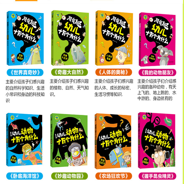 孩子的小脑袋瓜里永远有问不完的问题,为此,家长和老师们有时候会疲于应对和解答。《超有趣幼儿动物十万个为什么》在延续了《超有趣幼儿十万个为什么》的结构特色的基础上,更有针对性的全新打造了有关于动物的“十万个为什么”。而为什么只选择动物这一主题来制作这样的一套书:一是因为,动物是孩子们感兴趣的话题;二是因为,动物作为日常生活中比较常见和常听的主题,更能引起孩子们的阅读兴趣,而这套书也正是考虑到这一点,所展示的关于动物的小秘密都是当下孩子们提问最频繁和普遍的。活泼有趣的文字解答,再配上滑稽好笑的手绘彩图,相信一定能吸引孩子的眼球;而更贴心的是,解答部分加注了标准的汉语拼音,小学低年级的孩子完全可以独立阅读。