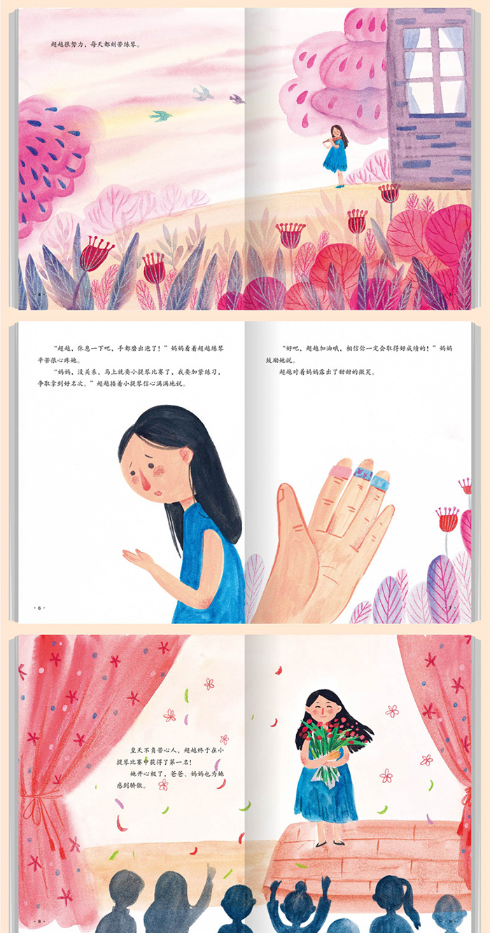 这是一本儿童图画故事书。每个孩子都有自己的梦想,超越小朋友也不例外,她的梦想是成为一名小提琴演奏家。经过努力,超越在一次小提琴比赛中获得了一等奖,家人、邻居都为她感到高兴,同龄人也以她为榜样。可这次获奖之后,超越就疏于练琴,琴技越来越生疏,在一次表演中演砸了。后来在妈妈的鼓励下,超越又点燃了梦想的火种。