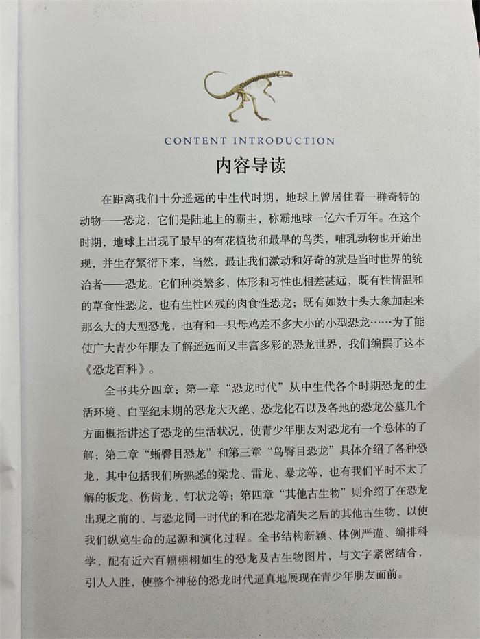 为了让广大读者对恐龙及相关知识有所了解,编者精心编撰了这本《恐龙百科》。本书系统地讲述了恐龙的分类、恐龙化石的发现、挖掘及研究,还介绍了在恐龙出现之前、和恐龙同一时代以及恐龙之后的其他古生物。全书编排科学,体例严谨,并配有大量精美的图片,使得恐龙及整个地球生命的起源和演化过程栩栩如生地呈现在读者眼前。