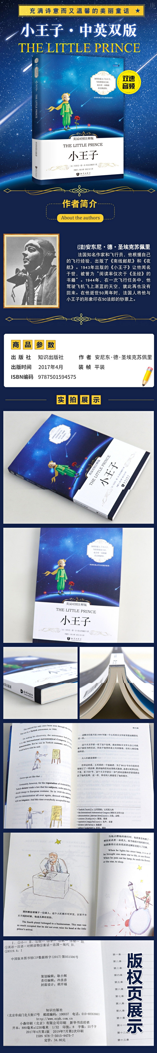 本书以一位飞行员的口吻讲述了小王子从自己星球出发前往地球的途中在六个星球的各种历险。整个旅途中,小王子结识了国王、爱慕虚荣的人、酒鬼、地理学家和狐狸等,在与他们的交流中领悟了一些人生及宇宙间的哲理。本书用小王子童真的视角,用浅显的语言描述出成人的空虚、盲目、愚妄、死板、教条以及他们的孤独与寂寞。