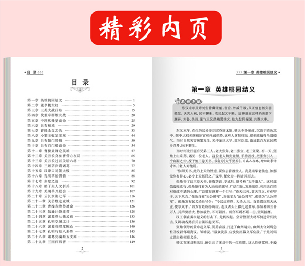 本书为中国古典文学名著之一。书中以东汉末年至西晋建立一百多年间发生的战乱为历史背景,展示了魏、蜀、吴三个国家的矛盾斗争,塑造了曹操、刘备、关羽、张飞、诸葛亮等众多典型的文学形象。