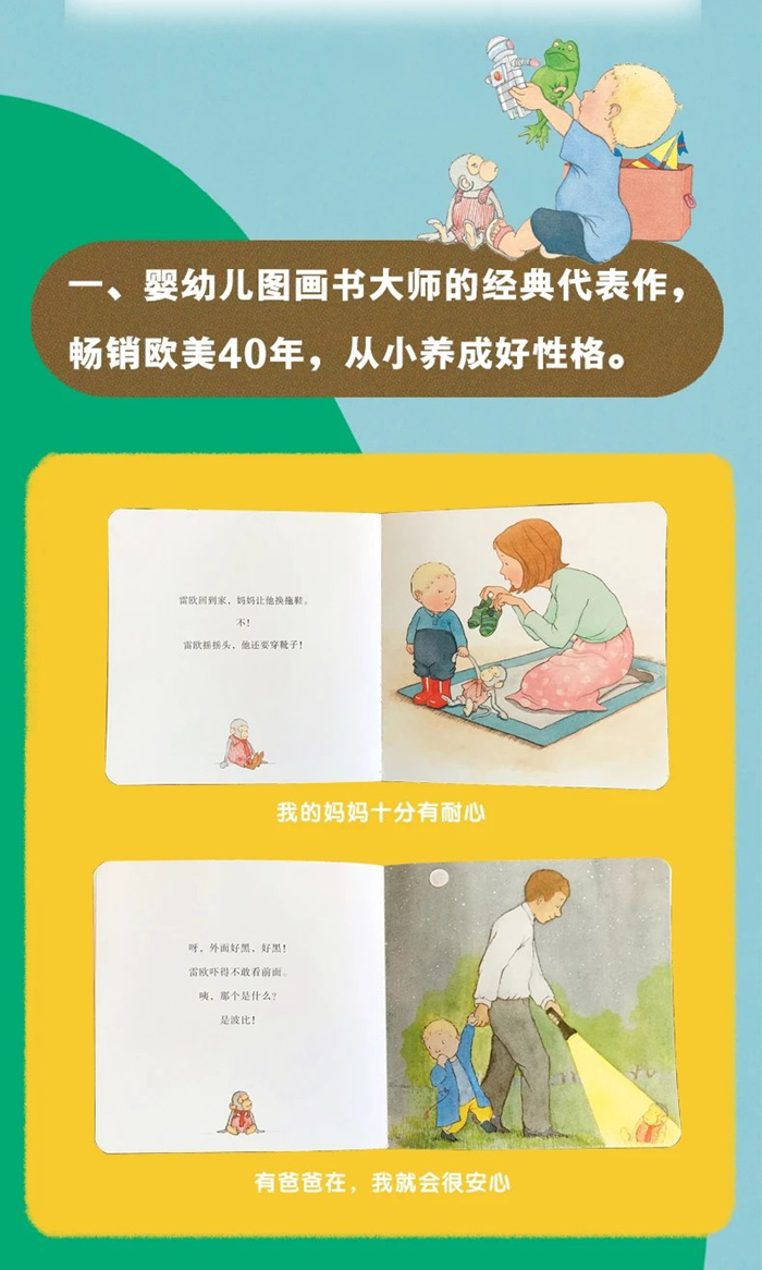 波比脏了,看起来不开心。雷欧想办法帮波比洗澡,还帮波比擦干。波比终于又变干净了。雷欧今年两岁了,他是一个快乐、勇敢、自信的小宝宝,他最爱的小伙伴是布偶波比。他就要上幼儿园了。和所有的小朋友一样, 雷欧在离开家庭,进入全新的、陌生的幼儿园时,会在生活、心理上遇到各种各样的状况和问题。但是雷欧很快就适应了幼儿园的生活,还交到了不少好朋友呢。 《向幼儿园前进·小雷欧》是专为2-4岁幼儿设计的幼儿园入园准备图画书。图书围绕幼儿园适龄儿童小雷欧的生活故事,采用生动有趣的绘画方式,细腻描绘儿童心理变化,让孩子产生共鸣。帮助孩子掌握基本生活技能,培养孩子心理适应能力、与他人沟通交往能力等。同时帮助孩子克服上幼儿园的恐惧,更好地适应幼儿园生活。
