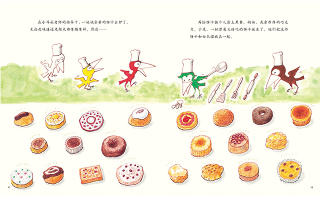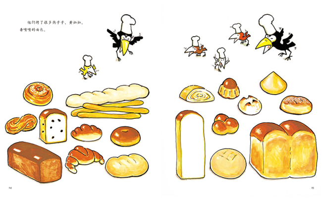 儿童图画书读物。本套装共五册,分册名分别为《乌鸦点心店》《乌鸦天妇罗店》《乌鸦拉面店》《乌鸦蔬菜店》和《乌鸦面包店》。在本书中,作者加古里子为孩子们奉上了一道视觉与阅读的双重盛宴。套装由五个故事组成,《乌鸦面包店》讲的是乌鸦夫妇和小巧克力、小柠檬、小年糕和小苹果四个孩子在困境中互相扶持,一起创造,开面包店的故事;其他四个故事则是这个故事的续篇,讲的是四只小乌鸦长大后的故事。他们继承了父母乐观的生活态度和热爱创造的精神,独当一面地经营或与别人合作经营着点心店、天妇罗店、拉面店和蔬菜店,真正地成人了。书中的故事情节曲折,充满了向上的精神,对各种食物的描绘,又符合幼儿喜欢食物的心理,能够吸引孩子。
