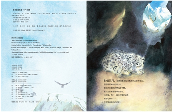 桑德拉用抒情详实的语言与艾伦-马克斯精美绝伦的插图完美得结合起来,讲述了一个生活在巴基斯坦兴都库什山脉上的一对雪豹幼仔的故事。在没有任何外力帮助下,只有一周大的幼仔凭借妈妈的经验,学会了如何在被他们称之为家的严酷环境中生存。寻找食物和忍受恶劣的气候,这是他们人生路上必须要学会的两门课程。这本书为我们提供了动物栖息地、动物的生命周期、掠食者之间的食物链、生命科学以及其他的生物知识,并呼吁我们人类应该帮助这些濒危物种。