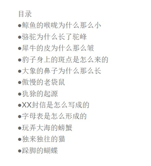 吉卜林写给孩子们的一部童话故事集,其内容涉及印度、丛林、草原、世界之初,而故事的主人公大都是我们熟知的动物。作者通过其超凡的想象力和诙谐的叙述方式为读者创造了一个与众不同、处处充满惊奇的童话世界。“鲸鱼的喉咙为什么那么小?”“骆驼为什么长了驼峰?”“犀牛的皮为什么那么皱?”……这一连串的疑问,你在吉卜林的故事里都将找到满意却又意想不到的答案。作者为每个故事配上一首诗歌,还亲自创作了精美的插图,更增添了其趣味性。