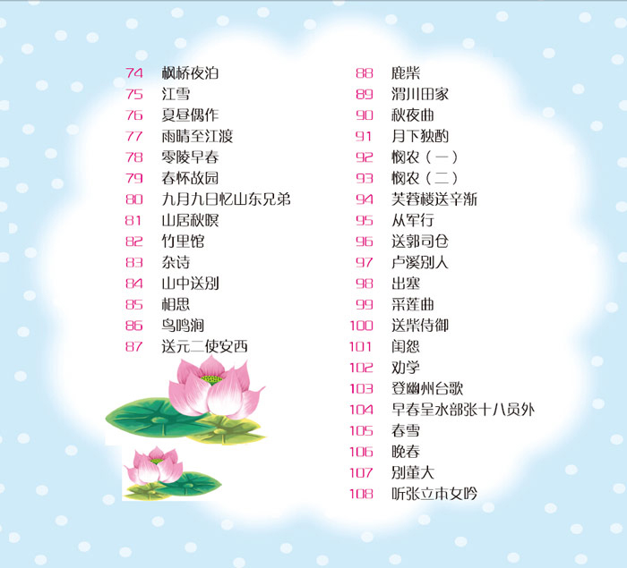 精美的场景图片,能够帮助孩子理解诗的意境。是孩子学习唐诗的必备启蒙图书。
