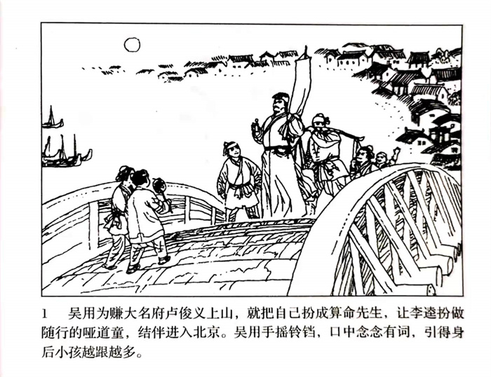 宋江从大圆和尚口中得知卢俊义的名气,使吴用赚卢俊义上山。卢俊义不肯留寨,回家遭恶奴陷害入狱。朝廷派关胜攻打梁山泊宋江起义军。