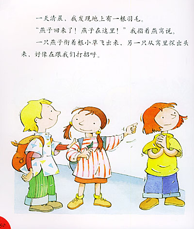 鸟巢:在这个故事里,燕子的迁徙帮助孩子们识别了四个季节:春季、夏季、秋季和冬季。每个季节里,天气的冷暖、雨水的多少、人们的穿着……都是不一样的。
