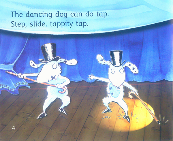 Follow the Dancing Dog as he dances his way through a selection of dance styles, and shows that he doesn’t always get the moves right. 跳舞的小狗能跳好多种舞--但他会跳所有的吗?跟随跳舞的小狗来进行舞蹈风格的选择,他可不是永远都跳得正确的哦。