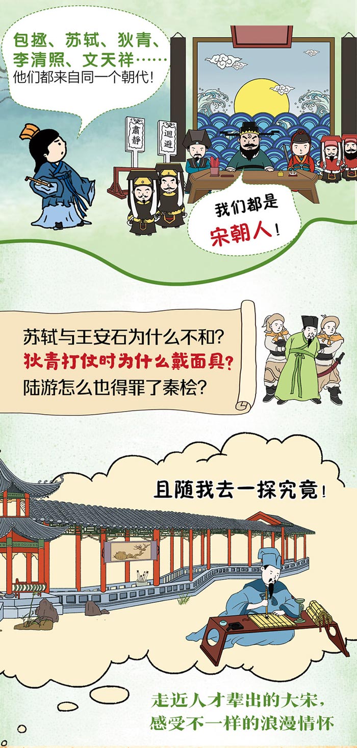 为什么王安石“好心办了错事”?为什么《清明上河图》“命运坎坷”?为什么忠诚的岳飞却遭到皇帝的猜忌?人才济济的大宋还有哪些好玩的人和事?让这本精心编绘的历史读本带着孩子找到答案。了解包拯、狄青、岳飞、文天祥、李清照等宋朝名人的生平故事,发现隐藏在国宝背后的秘密,学习历史宝贵的经验教训。
