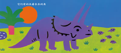 本书非常适合作为孩子们认识史前猛兽——恐龙的第一本书。作者运用了孩童般纯真的口吻和可爱的语调,将整本书的焦点集中在恐龙的外形特征和身体大小上,从而巧妙地回避了认识生物所需要的很多艰涩的专业词汇,美国著名插画家拜伦•巴顿那种特有的绘画风格,暖色调的背景安排,粗线条刻画的灵动造型以及大块的涂色与妙趣横生的画面组合方式,让孩子们在最初认识恐龙时能够感受到他并不是那么可怕,而是能够让人亲近。