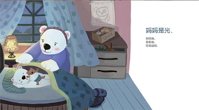 妈妈是风,温暖如煦的风。炎炎夏日,摇着扇子哄“我”入睡。妈妈是光,是家中床头灯的光,严寒冬日给我盖被子、加衣服,是温馨的光。