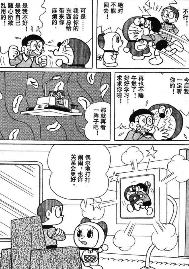 故事从一个小学4年级学生大雄开始。大雄并不是个非常优秀的学生,像不少小孩子一样,他在学校里成绩平平,也没有其他的什么长处。有一天,大雄打开自己的课桌,一只猫型机器人突然从抽屉里跳了出来,而这就是哆啦A梦。它是由大雄的后代从22世纪里给送来的,目的是帮助大雄解决许多他暂时无法解决的问题,并且尽可能地满足大雄的愿望。整个故事围绕着大雄和哆啦A梦这两个主角展开。 哆拉A梦的故事将孩子们带进了一个奇妙的、极富幻想力的世界,也正因此,哆拉A梦能够作为一个长青的形像,伴随了几代少年儿童的成长。