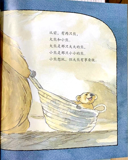 从前,有两只熊,大熊和小熊。大熊是那只大大的熊,小熊是那只小小的熊。小熊想玩,但大熊有事要做。