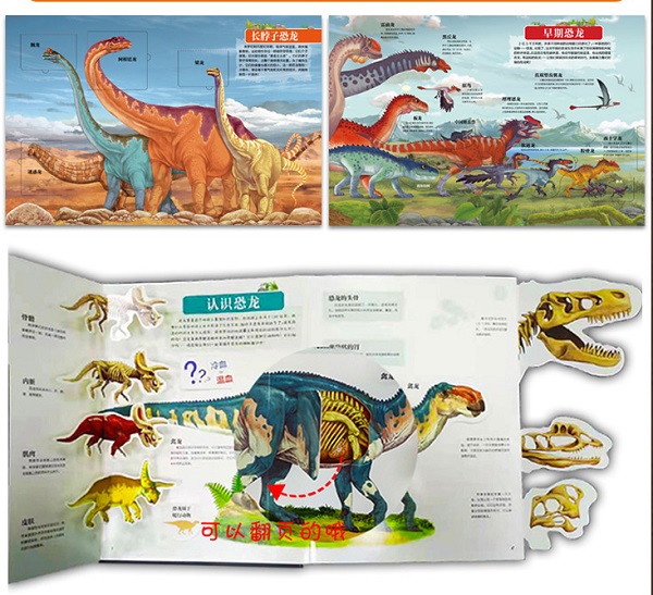 这是一本全方位介绍恐龙的儿童科普立体书,内容包含世界上60余种恐龙的写实插画,各种有趣的关于恐龙的科普知识。结合众多设计精巧的翻翻、转转等立体机关,既有丰富的知识,又充满互动性。本书能让儿童以寓教于乐的方式学习相应的科普知识,扩大眼界,在有趣的互动阅读中探索恐龙的奥秘。