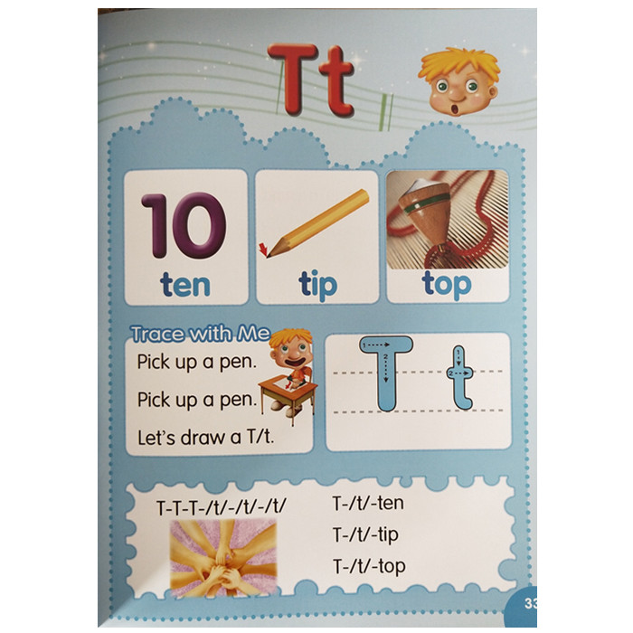 为了帮助孩子掌握26个英语字母的发音特点,并形成将字形与其发音正确对应的能力,特别针对每个字母设计了一本英文图画书。26个小故事涉及了时间、颜色、食物等多个孩子熟悉的生活主题。通过科学、合理的设计,在结构化的简单句式中不断复现含有同一字母的单词,帮助孩子掌握字母的字形及发音,终实现“见词能读,听词能拼,举一反三”,大大提高单词识别的速度和准确性。