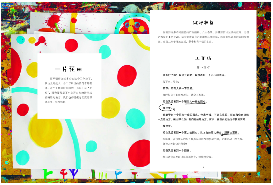 杜莱详细列出了每个活动的活动方案、准备材料、具体指令、实用技巧、演示图例、拓展活动及注意事项,并附以照片,手把手教你成为艺术工作坊达人!