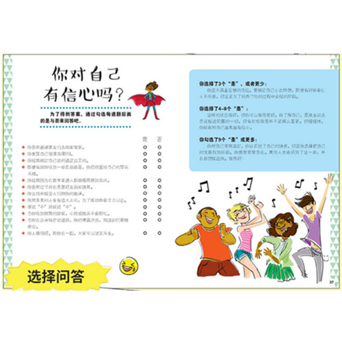 ◎ 一套从生理到心理全方位呵护孩子的“成长宝典”:生理卫生、学习规划、情绪管理,人际交往、家庭关系、穿着打扮,手机网络等各种话题皆有涉猎。 ◎ 用200个具体的问题为青春期解惑:没有理论式的说教,重在答疑解惑,但表现方式却绝不呆板,文笔柔和,配以插画。 ◎ 版块丰富,设计合理:既能让孩子学到知识,还会让孩子觉得有趣,“小测试”、“对与错“小版块的设置,具有极强的互动性,让孩子可以更了解自己。 ◎ 短小精悍型:每个主题都短小精悍,每册平均有75页左右,避开了长篇大论和读不懂的名词,很快就能理解消化。