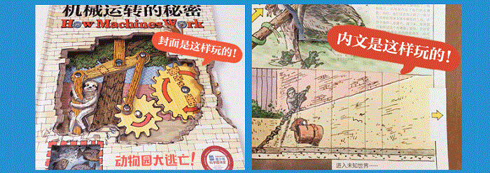 本书通过动物园大逃亡的故事,配以折页、翻翻页和其他复杂工艺,向小读者展示六种简单而典型的机械运转原理,日常可见的杠杆、滑轮、螺丝、倾斜平面、楔形和轮子。通过故事情节,巧妙地将知识和游戏融合在一起。小朋友们可以随着情节发展,自己动手组装书里的机械,或者跟着提示进行奇妙的体验哦。