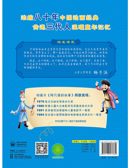 时至今日,阿凡提的故事仍然是常讲不衰的经典。经上海美术电影制片厂官方授权,我们将14集《阿凡提的故事》改编为14册美绘故事书,分为《阿凡提智慧故事》7册和《阿凡提幽默故事》7册。希望阿凡提的智慧和幽默,作为我们民族的文化宝藏,能够一代又一代地流传下去!