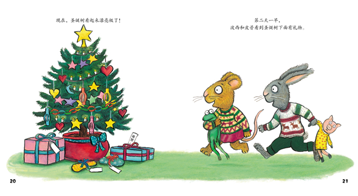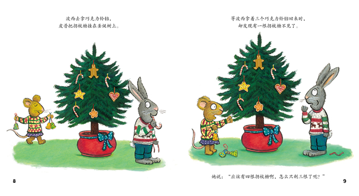 《波西和皮普:圣诞树》讲述了这样一个故事:圣诞节要到了,波西和皮普一起用一些漂亮的点心装点圣诞树,但是这些点心竟然接二连三地神秘失踪了。没过多久,皮普开始觉得不舒服。你知道这是为什么吗?这是一个有趣的故事,它不仅帮助孩子锻炼点数的能力,还讲了要与人为善的道理。