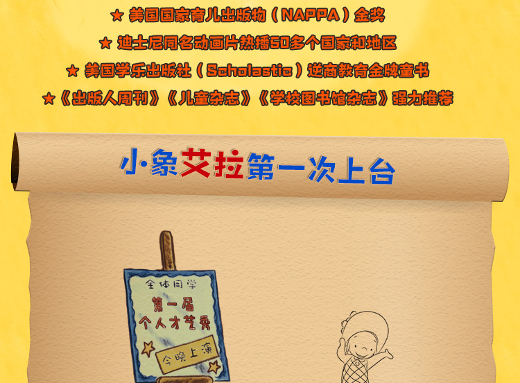 象岛上的小学即将举办第一届个人才艺秀,大家都很兴奋。贝琳达准备跳芭蕾舞,迪克和罗拉也迫不及待想要表演他们的魔术……艾拉也很想上台,可是,她要表演什么呢?