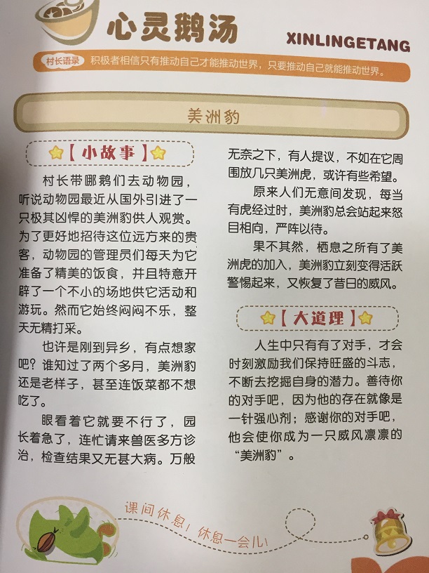 王浩之主编、尹戈绘画的《村长趣哪鹅》讲述:动漫星球上,村长是一个十分负责且热心的好人,他将村子管理的井井有条,替大家排忧解难,却也常常有着不可思议的“倒霉杯具”事件,令人捧腹不止。外星生物哪鹅们跟着村长处理各种小事,却因单纯呆萌的个性闹出不少笑话,有时还会说出许多雷人话语让村长无可奈何,为简单的生活增添了无限的欢乐。村长和哪鹅们虽然生活在远离地球的外星,却也和地球上的小朋友一样吃饭、学习、睡觉、玩耍,他们的囧经历、神吐槽以及充满活力和爆笑的日常,一定能让小朋友们看得开心不已。