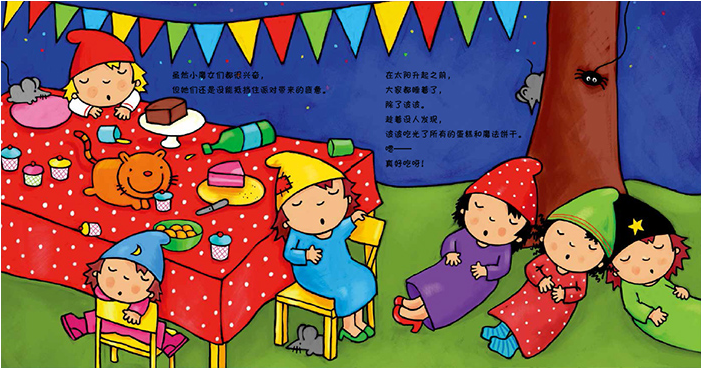 今天,小魔女咪咪要举办一场万圣节派对! 在睡美人和波波的帮助下,咪咪开始为派对做准备。 她们写请帖、烤蛋糕和魔法饼干、制作魔法柠檬水…… 很快,其他小魔女都骑着扫帚飞来了 这是个有趣的万圣节派对,小魔女们开心地吃东西,讲吓唬人的故事,可波波却偷偷吃光了桌子上的食物。它不应该这样做的…… 美好的东西总让人难以抗拒,但是小心“消化不了”哦。