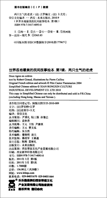 《世界各地最美的民间故事绘本(第1辑):两只生气的老虎》由未来出版社出版。