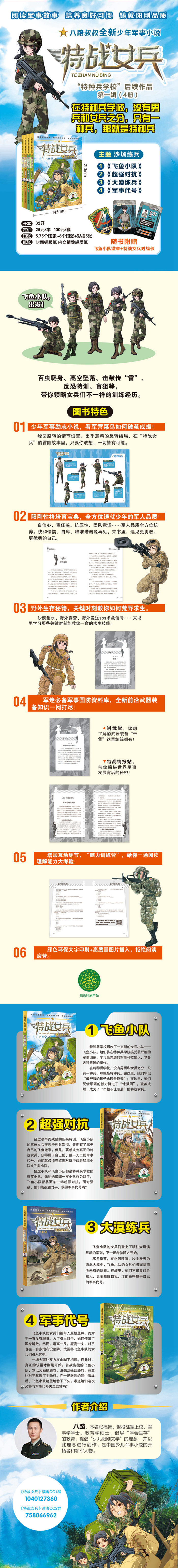 “少年强则国强!”对于生长在和平年代的“祖国花朵们”们来说,“特战女兵”系列少儿军事文学作品是不一样的阅读体验。生动、充满正能量的军事励志故事,丰富、前沿的军事科技知识……让他们领悟坚毅,收获成长!