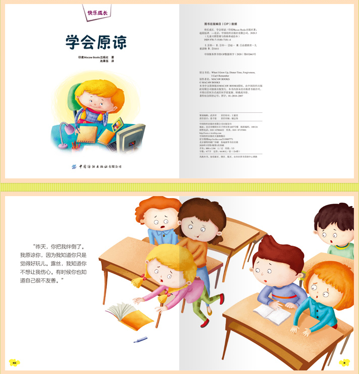 快乐成长系列共4个分册,分别为:《晚餐时间》《学会原谅》《我记不住》《长大以后》。本书通过小故事的方式,以孩子的视角阐述了孩子在成长过程中遇到的种种烦恼,用轻松的小故事、丰富多彩的插图漫画教给孩子如何应对这些烦恼,健康快乐地成长。