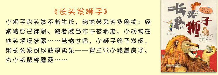小狮子的头发不断生长,给他带来许多困扰:经常被自己绊倒、被老鹰当作干草抓走、小动物在他头顶捉迷藏……苦恼过后,小狮子终于发现,用长头发可以获得快乐——帮三只小猪盖房子、为小松鼠种蘑菇……