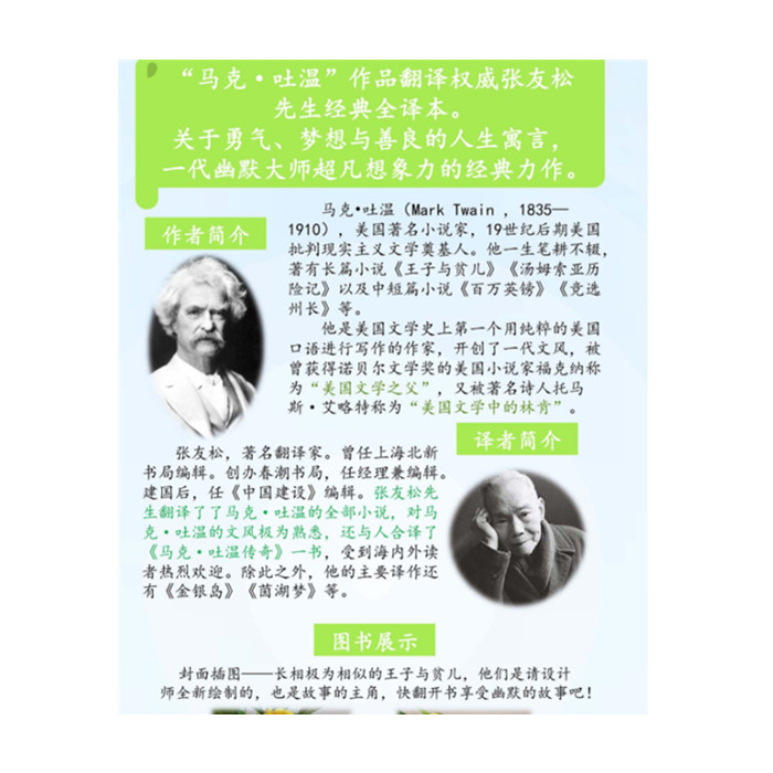 一个极富戏剧性的角色互换故事,一场人性善恶伪丑的较量。马克·吐温*满意的作品,带给无数人笑声与沉思,风行一个多世纪。
