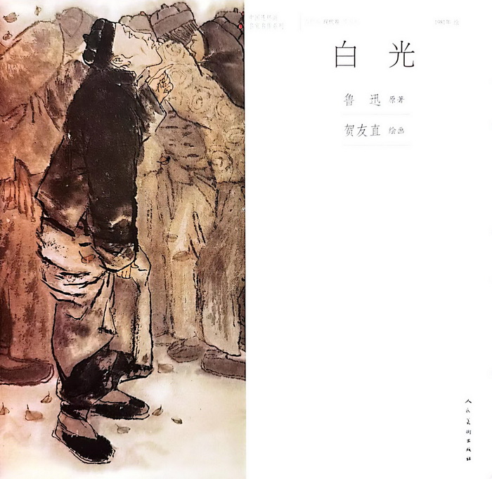 《白光》连环画版是贺友直先生据之为脚本而创作的。贺友直先生毕生致力于鲁迅青睐提倡的连环画,他取水墨写意之道,把中国画引入连延的故事之中,在白光的明灭隐现之间完成对鲁迅思想的“翻译”和诠释。 《白光》,鲁迅小说,见《呐喊》集,其连环图画则是贺友直先生于1980年的创作,计36幅,水墨淡写,初版至今已有25个年头了。最近上海人民美术出版社推出了这本连环画的再版,在辫子戏过分充斥舞台败坏我们的审美、搅乱我们的史观、污浊我们的心灵的当下,辫子老童生陈士成的悲惨故事,倒不失为一出严肃的正剧,亦如一角小小的镜子,照一照相去不过百年的昨日历史,让我们藉以认真地、艺术地认识一下我们的来处,不亦善乎。