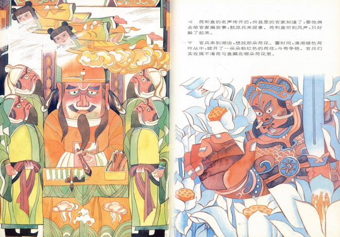 1991年由浙江少年儿童出版社出版的《彩绘本中国古典文学神怪故事丛书》。 分神、仙、鬼、怪四大类,每类4本共16册,概括了中国古典文学宝库中神怪故事具有代表性的名著精品。神:《五谷之神》《雷神的故事》《鲛人的眼泪》《牛郎织女》。仙:《壶公》《劳山道士》《秋公和花仙》《和合二仙》。鬼:《画皮》《荒园狐精》《王六郎》《宋定伯卖鬼》。怪:《鹤民国》《龟蛇二怪》《风神与花精》《白螺仙女》。这套书绘画由18位画家完成,每1-2位承担一个故事,不同的是每一册都独具个人风格,相近的是在整体上都展现了中国传统文化的迷人魅力。艺术表现手法借鉴采用了多种绘画语言,包括中国写意人物画、传统文人画、民间年画、远古壁画、战国帛画、汉代瓦当、写意国画、漫画、民俗装饰、剪纸拼贴等,有助于孩子们更直观地了解感受中国传统文化的魅力。