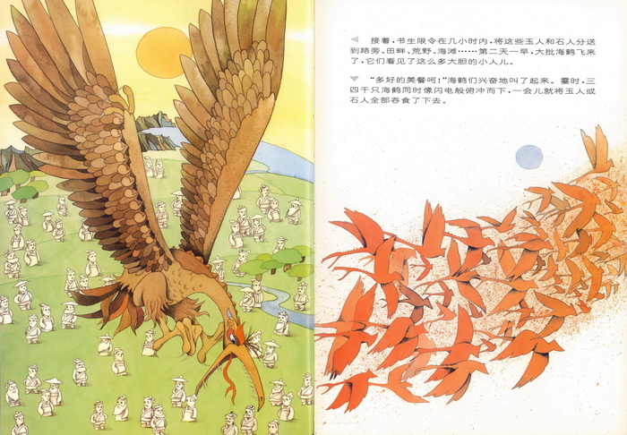 1991年由浙江少年儿童出版社出版的《彩绘本中国古典文学神怪故事丛书》。 分神、仙、鬼、怪四大类,每类4本共16册,概括了中国古典文学宝库中神怪故事具有代表性的名著精品。神:《五谷之神》《雷神的故事》《鲛人的眼泪》《牛郎织女》。仙:《壶公》《劳山道士》《秋公和花仙》《和合二仙》。鬼:《画皮》《荒园狐精》《王六郎》《宋定伯卖鬼》。怪:《鹤民国》《龟蛇二怪》《风神与花精》《白螺仙女》。这套书绘画由18位画家完成,每1-2位承担一个故事,不同的是每一册都独具个人风格,相近的是在整体上都展现了中国传统文化的迷人魅力。艺术表现手法借鉴采用了多种绘画语言,包括中国写意人物画、传统文人画、民间年画、远古壁画、战国帛画、汉代瓦当、写意国画、漫画、民俗装饰、剪纸拼贴等,有助于孩子们更直观地了解感受中国传统文化的魅力。