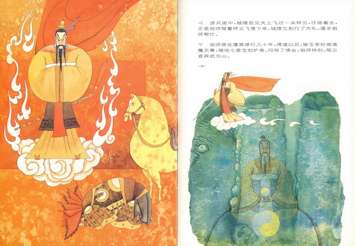 1991年由浙江少年儿童出版社出版的《彩绘本中国古典文学神怪故事丛书》。 分神、仙、鬼、怪四大类,每类4本共16册,概括了中国古典文学宝库中神怪故事具有代表性的名著精品。神:《五谷之神》《雷神的故事》《鲛人的眼泪》《牛郎织女》。仙:《壶公》《劳山道士》《秋公和花仙》《和合二仙》。鬼:《画皮》《荒园狐精》《王六郎》《宋定伯卖鬼》。怪:《鹤民国》《龟蛇二怪》《风神与花精》《白螺仙女》。这套书绘画由18位画家完成,每1-2位承担一个故事,不同的是每一册都独具个人风格,相近的是在整体上都展现了中国传统文化的迷人魅力。艺术表现手法借鉴采用了多种绘画语言,包括中国写意人物画、传统文人画、民间年画、远古壁画、战国帛画、汉代瓦当、写意国画、漫画、民俗装饰、剪纸拼贴等,有助于孩子们更直观地了解感受中国传统文化的魅力。