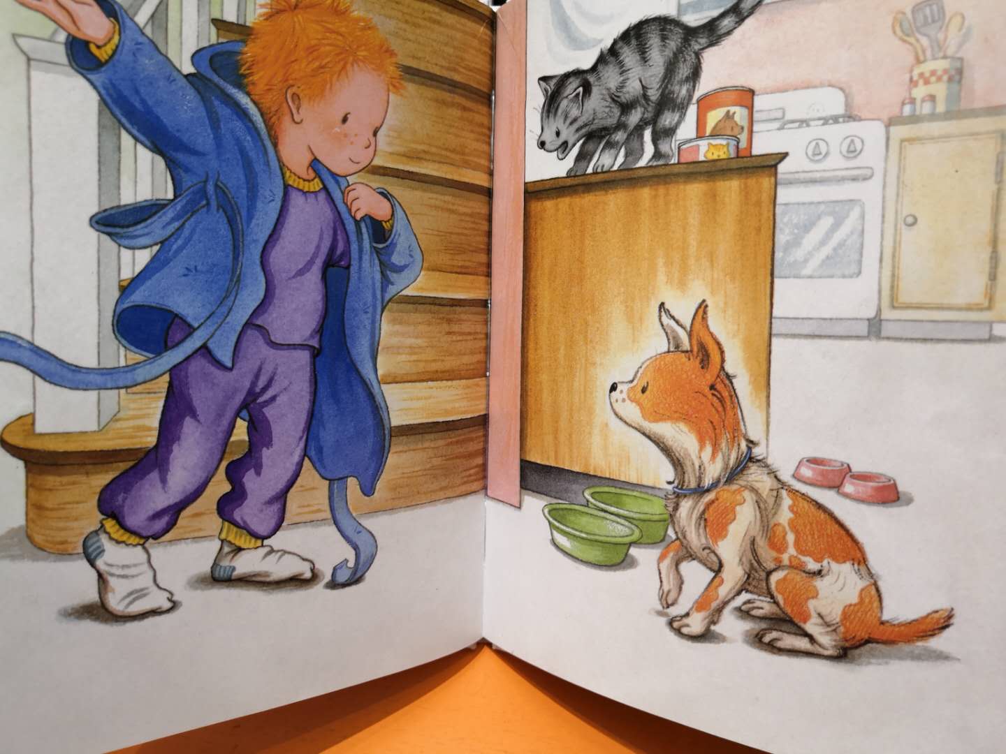 早晨起床后狗狗唯一的愿望就是有人来帮他打开装着狗粮的罐头,为他准备好今天的早餐,这真是个忙碌的早晨啊,猫咪吃完了自己的早餐,家人们也都吃过了烤面包片和牛奶麦片粥,可是谁来喂狗狗吃早餐啊?