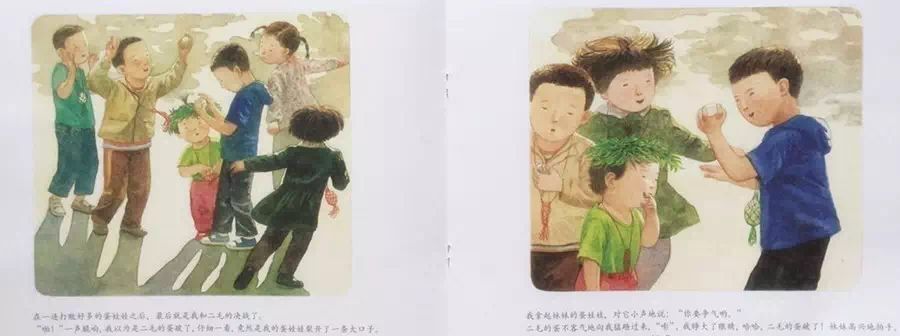 5月是一个神奇的月份,五月的空气是热乎乎的,麦子熟了,大人忙着收获,孩子忙着养蚕、摘桑葚、斗蛋……焕发着生命力的植物、成群的鸡鸭、欢乐的孩子、午后斑驳的树影,人与自然完美的融为一体。读完绘本,和孩子一起也来玩玩斗蛋吧。