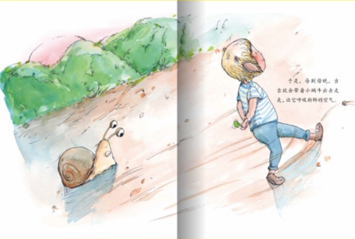 何文楠撰文、文栋绘图的《牵着蜗牛去散步》是一本适合低幼的国内原创少儿彩色绘本。这本故事书,看似简单,有大篇幅的绘画,字数相对比较少,体现出一种简洁明快的美感,是一本能让孩子们迅速产生共鸣和认同感的图画书。 本书讲述了一个小孩子在捡到一只蜗牛后的故事。 本书画面精彩温馨甜美,语言表达富于节奏韵律,且有孩子喜爱的生动形象,符合孩子认知和理解。